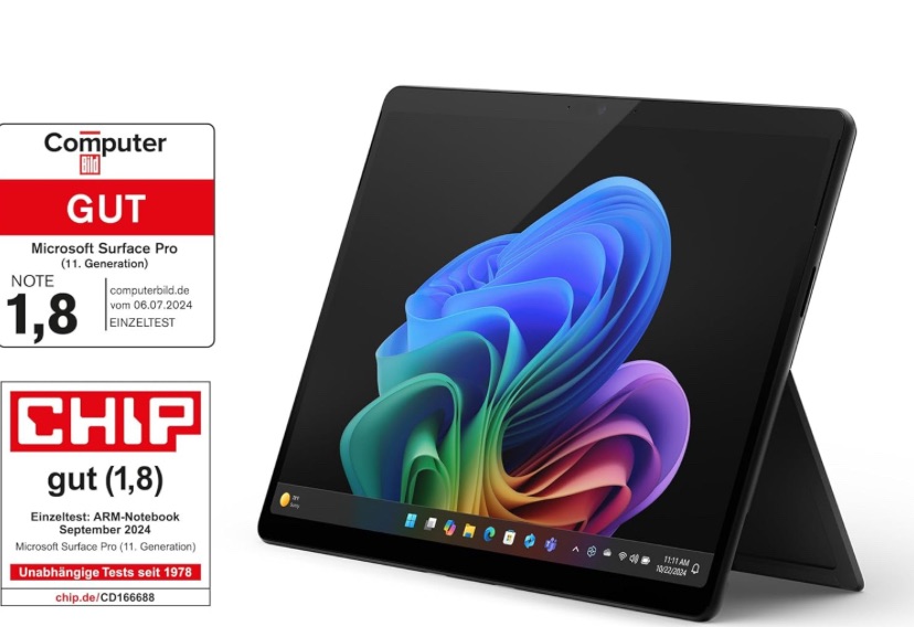 Microsoft Surface Pro | Copilot+ PC | 13” OLED Touchscreen | Snapdragon® X Elite (12 Kerne) | 16GB RAM | 256GB SSD | neuestes Modell, 11. Edition | Schwarz | exklusiv auf Amazon