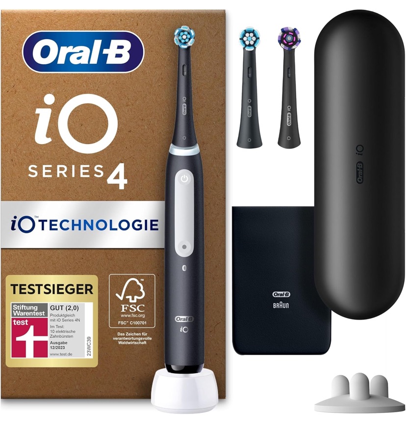 Oral-B iO Series 4 Plus Edition Elektrische Zahnbürste/Electric Toothbrush, PLUS 3 Aufsteckbürsten, Magnet-Etui, 4 Putzmodi, matt black, Designed by Braun,TESTSIEGER Stiftung Warentest (12/2023)