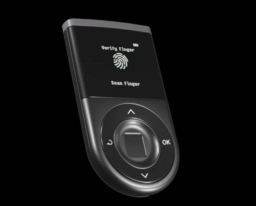 Das große OLED-Display der Wallet zeigt alle notwendigen Informationen und Menüs an, die durch die physischen Buttons auf dem Gerät navigiert werden können. Diese Buttons sind so positioniert, dass die Navigation intuitiv und effizient ist. Man kann durch Menüs scrollen, Transaktionen bestätigen oder den Fingerabdrucksensor nutzen, um Zugang zu sensiblen Funktionen zu erhalten. Die Kombination aus Display und physischen Interaktionsmöglichkeiten sorgt dafür, dass man jede Aktion im Auge behalten und sicher bestätigen kann.