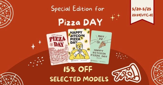 In der Vergangenheit hat CoolWallet ähnliche Aktionen durchgeführt, wie z. B. die Partnerschaft mit Pizza Hut Taiwan im Jahr 2022, bei der eine spezielle Pizza Day Edition für NFT-Sammler herausbracht wurde. Auch dieses Jahr bist Du dazu eingeladen, an Events und Gewinnspielen teilzunehmen, um den Bitcoin Pizza Day zu feiern.