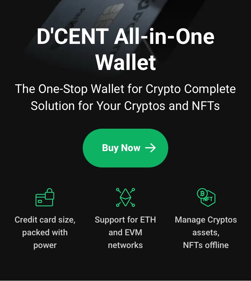 D’CENT ist vor allem bekannt für seine biometrische Hardware Wallet, die deine Kryptowährungen mit einer Fingerabdruck-Authentifizierung schützt. Die D’CENT All-in-One-Card ist für alle die gedacht, die es maximal einfach und vor allem kostengünstig haben wollen, aber dennoch nicht auf die Vorteile einer Cold Wallet im Vergleich zu Hot Wallets für Kryptowährungen verzichten wollen.