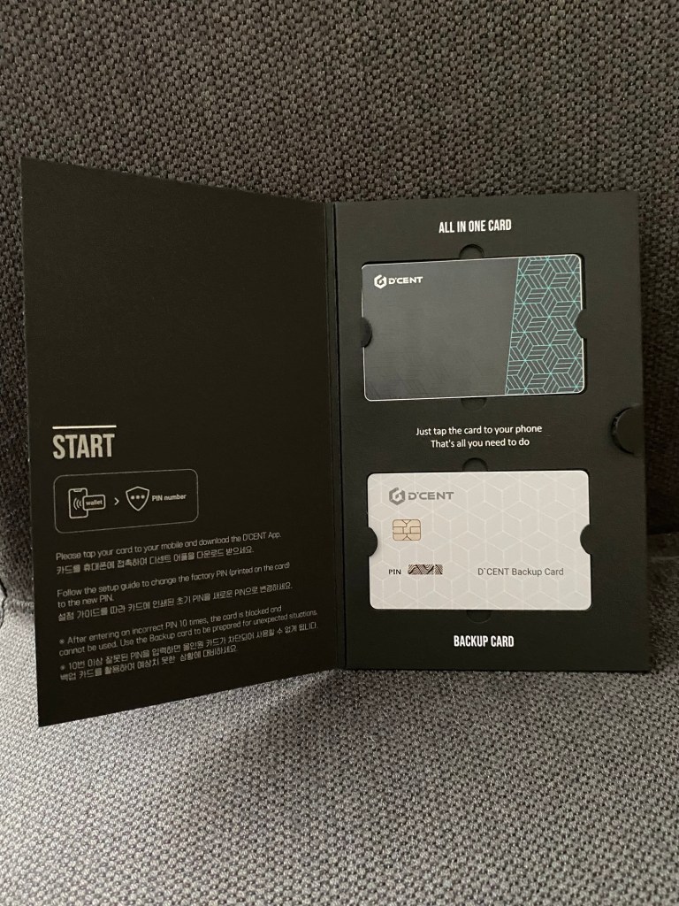 Zunächst einmal handelt es sich um eine reine Kartenwallet, die in letzter Zeit immer beliebter geworden sind, da sie einerseits bequem in der Geldbörse untergebracht werden können und gleichermaßen das Bedürfnis nach einfachen und schnellen Transaktionen befriedigen. In der Regel funktionieren sie über einen eingebauten NFC-Chip. Einfach in der zugehörigen Smartphone-App eine Transaktion vorbereiten, Wallet Karte ans Handy halten, fertig. Insbesondere für Leute, die nur wenige Transaktionen und ohne viel Schnickschnack wie Web3 und DeFi-Protokollen unterwegs sind die maximal einfache Lösung. Die D’CENT All-in-One-Card stellt da keine Ausnahme dar und funktioniert nach dem selben Muster.