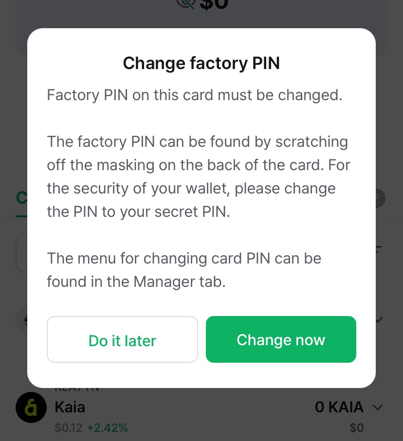 Ihr könnt das Ändern zwar auch zu einem späteren Zeitpunkt machen, das würde ich euch aber nicht empfehlen, da die Werks-PIN auf der Karte angebracht ist und somit von jedem verwendet werden könnte, der in Besitz der Wallet-Card ist. Also ändert sie am besten direkt beim Setup, bei eurer Bankkarte würdet ihr das ja vermutlich auch tun 🙃