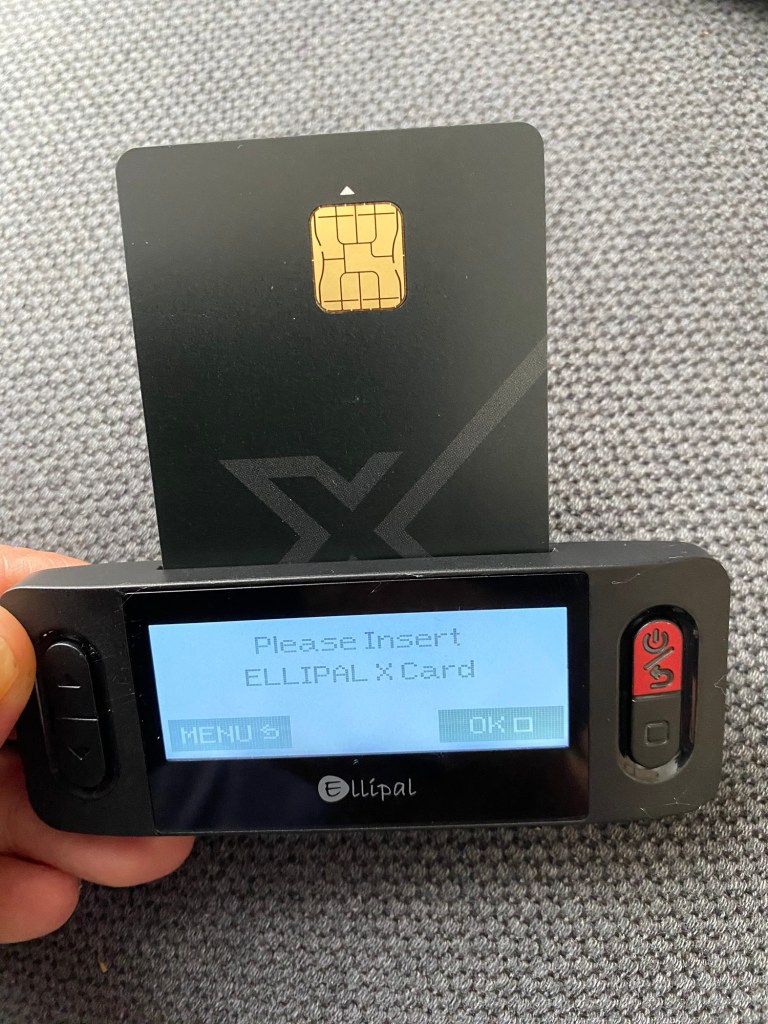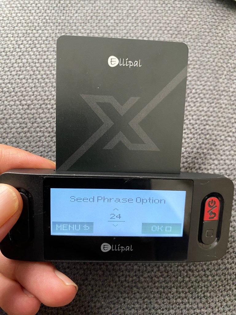 Warum der Aufwand? Im Gegensatz zu beispielsweise Tangem, die einen seedless Ansatz ermöglichen, das heißt die Erzeugung eines privaten Schlüssels direkt in der Karte, ohne, dass ihr oder jemand anderes diesen kennt, wird bei der Ellipal X Card eine traditionelle Seed erzeugt, die ihr benötigt, wenn ihr eure Wallet nach Verlust, Diebstahl, etc. wiederherstellen müsstet. Damit dies nicht wie sonst allgemein üblich über eine Verbindung der Wallet zu einem Computer und/oder Internet geschieht (mit den klassischen Gefahren, die das theoretisch haben kann), setze Ellipal auf dieses separate Gerät was eine vollständig autarke und offline Erzeugung eurer Seedphrase ermöglicht.