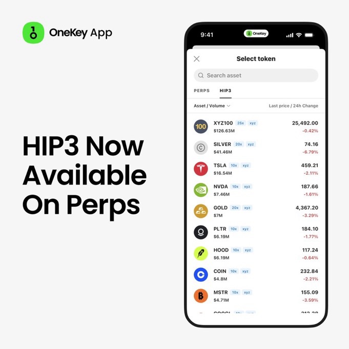 Du hast vielleicht schon von der OneKey Wallet gehört – einer sicheren Hardware- und Software-Lösung für Kryptowährungen, die von Investoren wie Binance Labs und Coinbase Ventures unterstützt wird. Nun hat OneKey einen weiteren Schritt in Richtung Diversifikation gemacht: Die Wallet integriert nun den Handel mit Perpetual Contracts für Aktien, Devisen (FX) und Edelmetalle. Dies ermöglicht es dir, über eine einzige App auf eine breitere Palette von Märkten zuzugreifen, ohne zwischen verschiedenen Plattformen wechseln zu müssen.