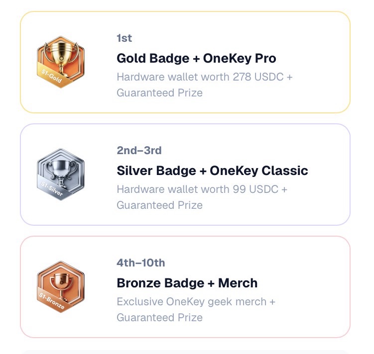 🎁 Perps Sesaon 1 – bei OneKey handelst du Perpetuals auf Krypto, Aktien, Edelmetalle oder Rohstoffe ohne Gebühren. Lade Freunde ein und gewinne Rewards zwischen 9 und 99 Dollar sowie Hardware Wallets wenn du in der Rangliste vor stehst.