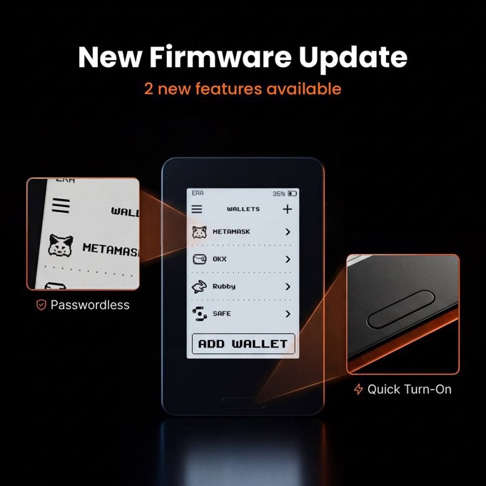 Der Hardware-Wallet-Hersteller ERA Wallet hat gestern ein neues Firmware-Update veröffentlicht. Die Aktualisierung bringt zwei wesentliche Verbesserungen: optionale Wallet-Passwörter (Passwordless Wallets) sowie ein deutlich schnelleres Einschalten des Geräts. Damit setzt ERA seinen Kurs fort, Sicherheit und Benutzerfreundlichkeit noch enger zu verzahnen – nur einen Tag nach der Einführung der deutschen Sprachunterstützung.