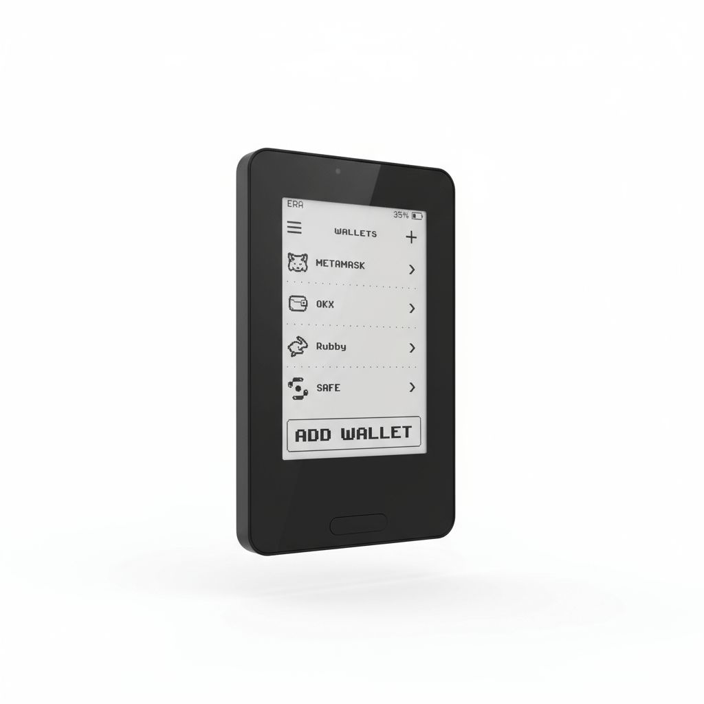 The ERA Wallet avoids blind signing — you always see exactly what you are signing. No paper backups or insecure methods: everything is designed for the highest level of security. The accompanying ERA Companion App lets you adjust settings and perform firmware updates without the device itself ever going online.